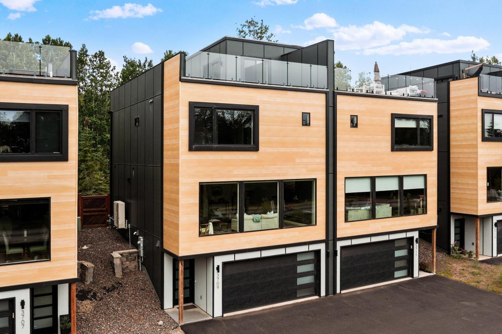 Welcome to the new London East Development, where modern design meets everyday comfort just steps from Duluth’s most beloved amenities. This custom built home offers exceptional craftsmanship and thoughtful details throughout. From the attached two-car garage, step into a welcoming guest suite complete with private full bath, a perfect retreat for visitors. The main level is flooded with natural light, featuring an open layout with a fireplace anchored living room, dining room, and a chef’s kitchen with stainless steel appliances, hard surface counters, pantry, and a center island with plenty of seating. Sliding doors extend your living space to a fenced yard with maintenance free decking and turf. Upstairs, you’ll discover three bedrooms, including a serene primary suite with a dream walk-in closet, large enough to feel like its own room, and a gorgeous private bath with double sinks and walk in shower. A ¾ guest bath and conveniently located laundry room complete this level, adding both function and ease. Up a couple steps, the crow’s nest provides endless opportunities as an office, gym, or lounge area and opens to a finished rooftop deck with panoramic views. With a bath on every floor, remote-controlled window shades, zoned in-floor heating, and central air, this home is designed for both luxury and everyday comfort. Here, lifestyle is everything, stroll the Lakewalk, catch summer concerts at Glensheen, or explore both Canal Park and the North Shore within minutes. This home offers not just a place to live, but a way to experience the very best of Duluth.