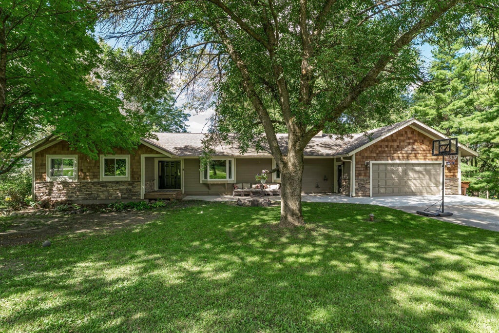 Tucked away on over 4 wooded acres, this serene property offers the feel of country living just minutes from all Prior Lake amenities. Surrounded by mature trees and abundant wildlife, the home provides privacy, space, and a peaceful lifestyle. The main level features a spacious primary suite with backyard views, walk-in closet, and private three-quarter bath. Two additional bedrooms share a full bath. Multiple living areas, including a living room and family room, provide great entertaining space. The eat-in kitchen with stainless steel appliances flows into the formal dining room. Sliding glass doors lead to a vaulted, screened-in porch with a ceiling fan, opening to a large deck and expansive backyard that feels like you're up north. The walkout lower level offers incredible potential for an in-law suite with a second full eat-in kitchen, generous living space, and room to add bedrooms. This home has seen numerous upgrades in recent years, including a new A/C system (April 2021), front-facing windows (Oct 2021), and a gutter system with leaf filters and a transferable warranty (May 2021). A whole-house water filtration system was added in May 2022. The chimney received waterproofing and a new liner (Feb 2024), with new cement work completed in June 2024. A high-efficiency furnace was installed in Nov 2024. A new water softener (rental) was added in April 2025. The septic system was updated with a new pump and pipe repairs in July 2025. The oversized insulated two-car garage has pull-down attic storage. Outside, enjoy a peaceful front patio, a 16' x 11' storage shed, and wide open yard space. Located in a quiet neighborhood just down the road from Webber’s Apple Orchard, this is your private retreat close to it all.