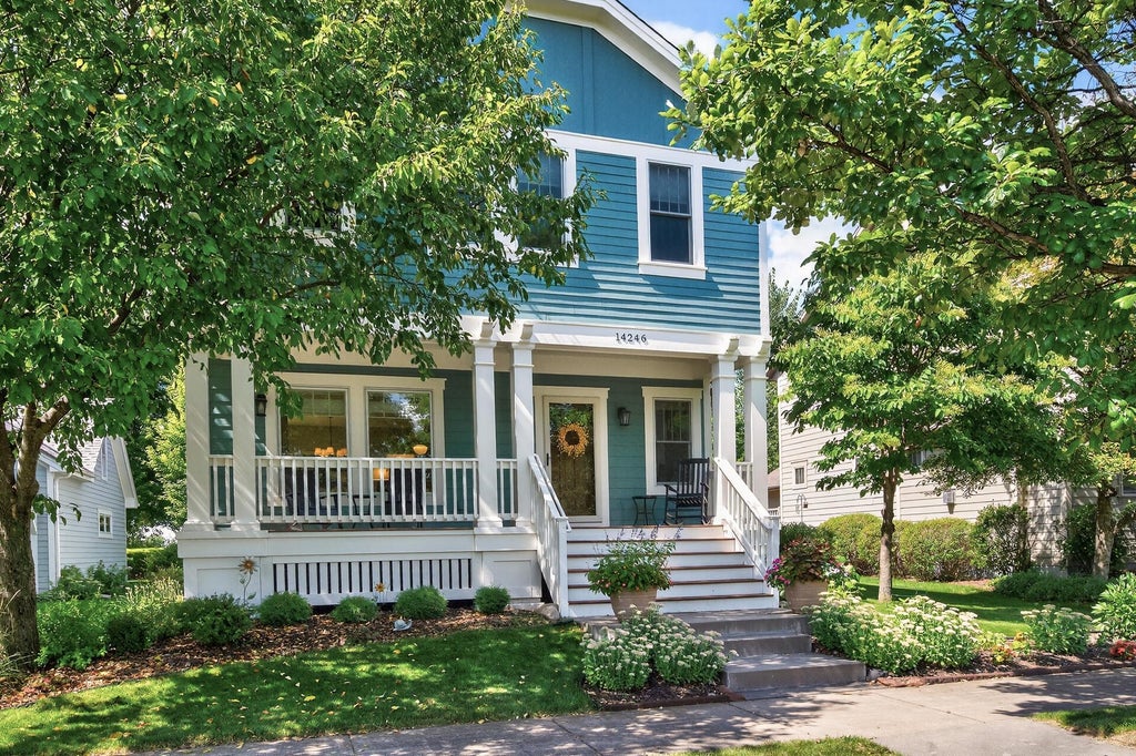 Nestled in the heart of Victor Gardens—where homes reflect classic Americana architecture with a modern twist—this charming home offers the perfect blend of timeless design and modern comfort. The freshly painted exterior and welcoming front porch overlook Arbre Park, creating a warm and inviting space to unwind or connect with neighbors. Inside, the open-concept main level features a sun-filled living room with a cozy gas-burning fireplace, flowing into a well-appointed kitchen with hardwood floors, granite counters, stainless steel appliances, and a spacious pantry. Upstairs, you'll find three bedrooms on one level, including a generous primary suite with double vanity, soaking tub, separate shower, and an oversized walk-in closet. The upper-level laundry room adds everyday convenience. The finished lower level includes a large family room, additional bedroom, full bathroom, and two secret doors disguised as bookshelves—adding a whimsical touch. Step outside to a 12x20 stamped concrete patio surrounded by lush plantings, offering a tranquil garden retreat. An oversized 2.5-car rear entry garage provides ample storage and space for a workshop. Recent mechanical upgrades include a 2025 Trane 97% efficiency furnace and 3-ton A/C. Victor Gardens offers exclusive amenities including parks, trails, and a private neighborhood pool. With its idyllic setting, architectural charm, and thoughtful updates, this home is a true Victor Gardens gem!