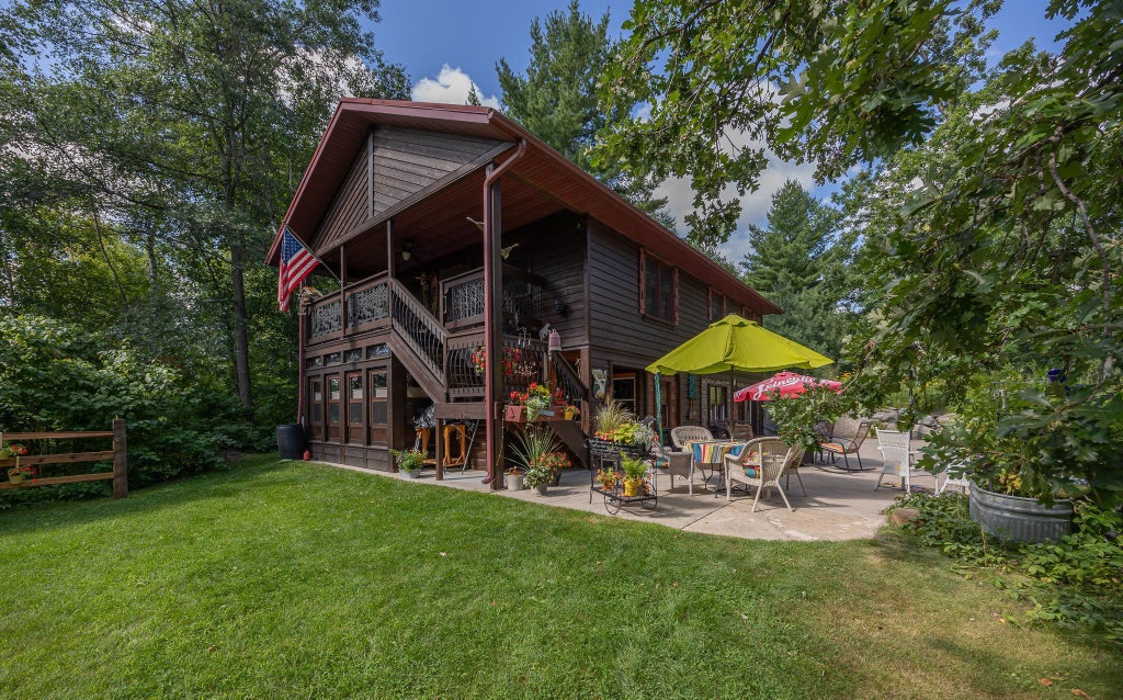 Horseshoe Lake (Barclay Township) – Feel the stress relief as you wind your way down Larrup Trail to this 3 structure sanctuary on 3.8 acres of privacy and 240’(+) of swimmable shoreline. Massive pines and hardwoods shadow the main home with 2(+) BR, 2 kitchens, an upper family room and main floor living room. An exterior stairwell connects both levels with a large 2nd floor deck. The home features electric/forced air heat with a free standing A/C unit. A main floor “flex” room and utility room complete the living space. Chipped log interior walls, hardwood floors and wainscot ceilings add to the rustic charm. The architecture of this home harkens back to Adirondack lodges of the past. A copper double sink and log accents set this home apart from anything on the market. The Lake Cabin! This 1,104 SF lodge styled home features an immense primary BR w/loft, a copper sink in the kitchen, a one-of-a-kind wood fireplace, LP heat and a sprawling outside deck with an open sided gazebo – all on the water’s edge. Garage w/ Living Quarters – Connected by stone pathways to all of the living spaces is the third family quarters with a main floor “flex” room leading to a second floor hideaway featuring electric heat with a mini split, six “bed nooks”, BR, loft, ½ bath and a loft family room – all over a double garage with “silo” wood exterior walls – all oozing woodsy panache! Please note : Horseshoe Lake falls in both Cass and Crow Wing County so the total lake surface acreage is 114 acres.