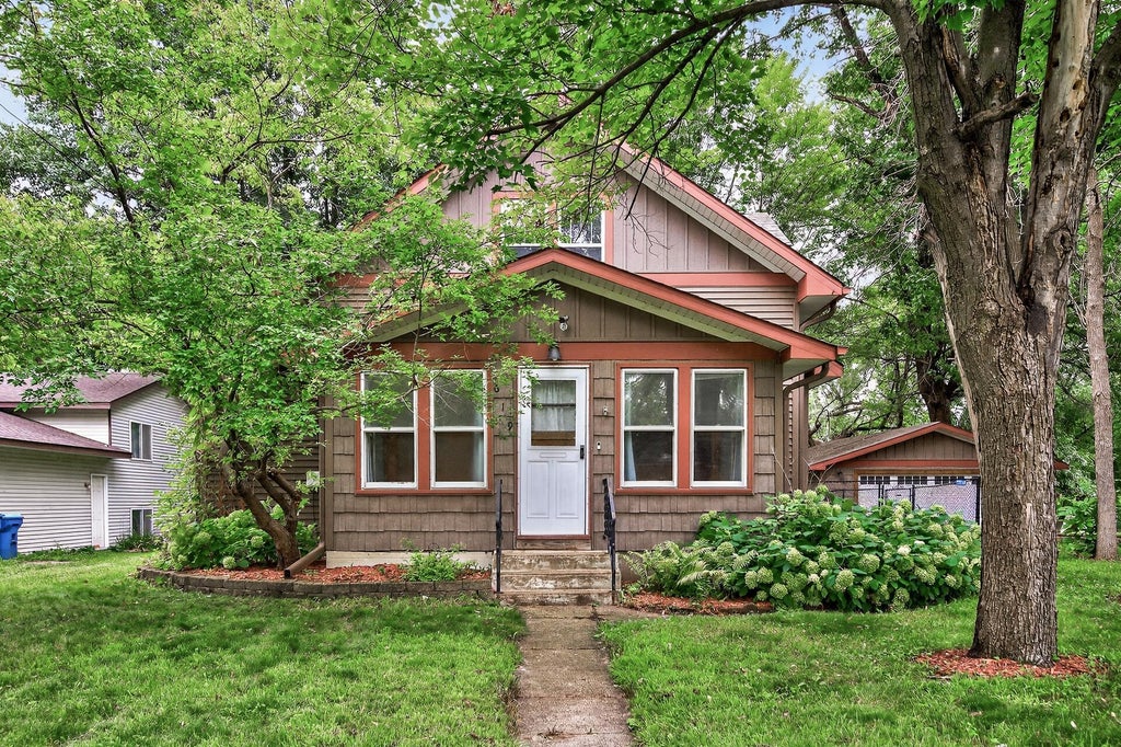 1.5 story craftsman style charm has been preserved throughout the home with refinished hardwood floors and built in storage. Front door will have you enter on the main level into the sun filled foyer. Main level also features an updated kitchen with smudge resistant appliances, bathroom and laundry. Next to the upstairs will be a 8x5 pantry, closet or even 1 person office space. Upper level has all bedrooms while lower level is ready for storage, bathroom update or even future laundry. Backyard views from the 10x24 deck are fully fenced area including mature trees, fresh garden areas and bonfire pit. 30x24 large detached garage with bonus parking pad on the right, ready for future lean-to. Brand new roof ready for the new homeowner. In town living provides all dining, grocery, parks and lake activities within legitimate walking distance.