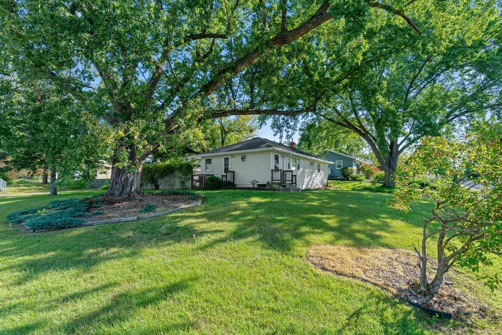 Welcome to this beautifully updated 3-bedroom, 2-bath one-level home perfectly situated on a quarter-acre corner lot.Step inside to a fresh, open layout featuring a completely remodeled kitchen with crisp white cabinetry, stainless steel appliances, luxury vinyl plank flooring, and a breakfast bar that flows into the informal dining area. The spacious main-level family room is filled with natural light from a huge picture window and showcases refinished hardwood floors—large enough to accommodate both a living and dining space if desired. Three comfortable bedrooms and a fully updated bathroom complete the main level.The finished lower level offers an oversized family room with excellent closet space, plus an adjoining bonus area ideal for gaming or play. An additional room provides flexibility for a home office, workout area, or hobby space. The lower level also includes a nicely updated ¾ bath, laundry area with washer and dryer, and plenty of storage. Outside, enjoy the side deck leading to a large concrete patio—perfect for entertaining or relaxing in your fully matured yard. The oversized one-car garage provides extra room for storage or projects....don't miss the hidden workshop! There is also a large additional parking area outside of the garage...big enough for a few cars, boats, rv, etc. Many updates include new Central Air, lighting, paint, flooring, hardware, garage door, etc. Conveniently located near Hwy 36 and 61, you’ll have shopping, dining, and parks just minutes away. This move-in-ready gem offers style, function, and a fantastic location—don’t miss it! Agent Owned - FHA and VA welcomed. Flexible closing.