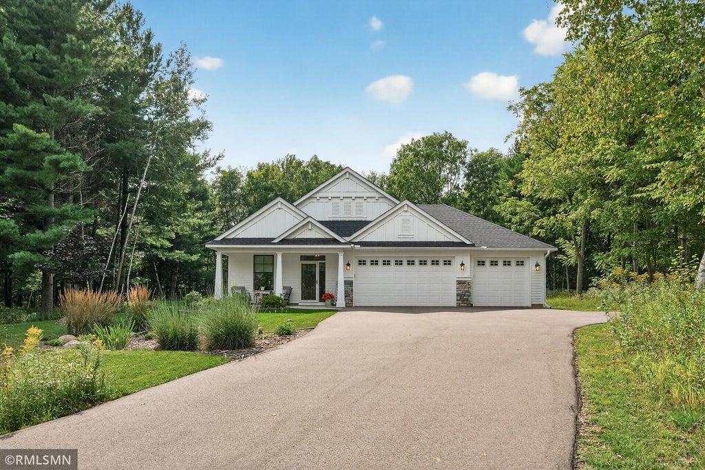 Welcome to 19320 Meadowridge Trail N, Marine on Saint Croix, MN. Nestled on just over an acre of beautifully landscaped grounds, this stunning custom-built home offers the perfect blend of privacy, quality, and one-level living. Built in 2022, every inch of this property showcases thoughtful design and top-tier craftsmanship. Step inside to discover gorgeous flooring, arched entryways, solid wood doors, and timeless finishes throughout. The open-concept main living area features a cozy stone gas fireplace, ideal for relaxing or entertaining, and flows seamlessly into a spacious dining area. The chef’s kitchen is a dream come true, complete with a cooktop, stylish range hood, wall oven, and an oversized island perfect for gathering with friends and family. Just off the living and dining rooms, enjoy year-round comfort in the bright and inviting sitting room/sunroom, which opens to a secluded backyard patio—your own private retreat with a hot tub. The spacious owner's suite is a true sanctuary, featuring elegant wall accents, a large vanity, and a fully tiled walk-in shower in the ensuite bath. At the front of the home, you'll find a full guest bath, a comfortable second bedroom, and a versatile den—perfect for a home office or study. A generous 3-car garage offers ample room for vehicles, storage, and even includes an extra-deep third stall for larger items or workshop space. Don't miss your chance to own this exceptional home in a serene and sought-after location with access to Big Marine featuring lakeside gathering space, bonfire pit, swimming platform and fishing spots! Schedule your private tour today and experience all that 19320 Meadowridge Trail N has to offer!