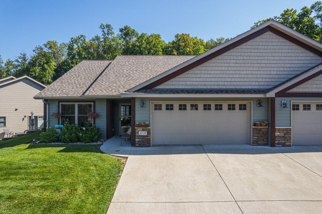 Beautiful Golden Bay Shores Twin Home. Open Floorplan with Vaulted Ceilings, Kitchen Island, and Living Room Fireplace. Patio Doors Open to Sun Splashed Concrete Patio and Beautiful Flower Garden. 2 Bedrooms Plus Den with 2 Full Baths. Large Master Suite with Walk in Closet. Hydronic Infloor Heat plus Ductless Mini Split Unit. Attached 2 Car Insulated Garage. Mature Landscaping with Underground Sprinkler System. Walking Trails, Inground Pool, and Fishing Pier on Deadshot Bay.