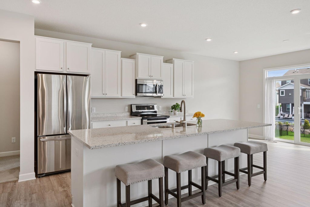 Discover the ease of main-level living in this thoughtfully designed home, where all three bedrooms are conveniently located on the main floor for optimal comfort and accessibility. A dedicated main floor laundry room adds everyday convenience, making chores a breeze without the need to navigate stairs. The primary suite is a true retreat, featuring a generous walk-in closet and a beautifully appointed bath with both a soaking tub and separate shower. The kitchen is a standout with its spacious center island, stainless-steel appliances, and plenty of room to gather. Durable laminate flooring adds a modern touch throughout the main living areas. Downstairs, the lookout basement is filled with natural light and ready for your finishing ideas, whether it's a home gym, studio, or extra living space. A roomy three-car garage rounds out the property, offering ample storage and protection from the elements
