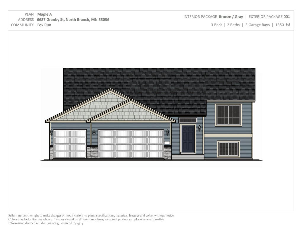 Under Construction Split Level Single Family Home with an estimated November completion! NO HOA! The Maple floor plan offers an open concept living space w/ vaulted ceilings, 3 Bedrooms, 2 Bathrooms, and 3 Car Garage! Unfinished Walkout Lower Level offers space for a future Family Room, 4th/5th Bedroom, and additional Bathroom. Private Primary Suite includes a walk in closet and Private Bathroom. The Kitchen features quartz countertops, white cabinets, stainless steel appliances, pantry, recessed lighting, and center island. No changes or modifications can be made to selections or floor plan. Photos and renderings may not depict actual plan, materials, & finishes may vary. All measurements are approximate.