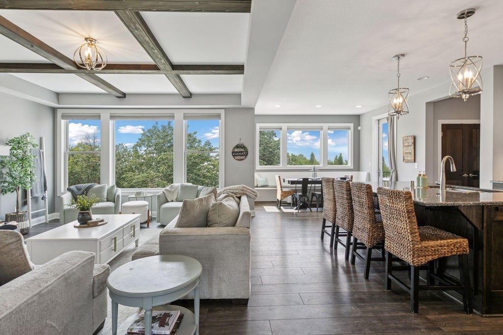 Crafted by TJB Homes and enriched with thoughtful enhancements, this exceptional two-story showcases architectural precision, premium materials, and livable elegance on every level. Expansive windows illuminate the vaulted stairhall, wood ceiling beams, and a dramatic floor-to-ceiling stone fireplace—hallmarks of the builder’s artistry. The open kitchen pairs function with design, featuring granite surfaces, island seating, and custom cabinetry that extends seamlessly into a dining area with a built-in bench. A private staircase leads to the primary suite, designed as a retreat with a sitting area, dual vanities, walk-in shower, and soaking tub. Three additional bedrooms—two connected by a Jack-and-Jill bath—plus a full bath and loft provide versatile options for family and guests. The finished lower level is equally impressive with a custom wet bar, expansive family room, guest bedroom, and bath, opening to a stamped concrete patio. Outdoor living spans multiple levels with a TimberTech deck, professionally landscaped backyard, and heated 3-stall garage. All within Centennial Schools, with trails, amenities, and major roadways nearby.