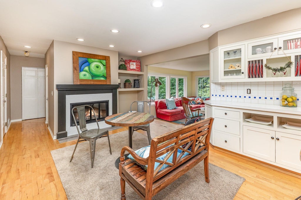 Nestled just minutes from the Lake Minnetonka shoreline, this enchanting 4-bedroom, 3-bathroom New Orleans-style home offers timeless charm, modern updates, and serene privacy on a beautifully landscaped 1.5-acre lot where nature and wildlife abound. Located at the end of a private road with no traffic. A welcoming front entry opens to a spacious living room featuring crown moulding and a cozy wood-burning fireplace—perfect for gatherings or quiet evenings. The formal dining room flows seamlessly into the large eat-in kitchen (ready for your design ideas), where you'll find maple hardwood floors, a second wood-burning fireplace, and an adjacent powder room. Just beyond, a sunken sunroom floods the space with natural light and provides walkout access to the paver patio and peaceful backyard retreat. Upstairs, you'll discover four generously sized bedrooms, including a spacious ensuite with private, screen enclosed balcony access—ideal for morning coffee or relaxing under the stars. The recently finished lower level expands your living space with a comfortable family room, office/flex area, and ample storage. Whether you're hosting loved ones or enjoying quiet mornings on the balcony, this home is a rare gem in a sought-after location with nature and wildlife.