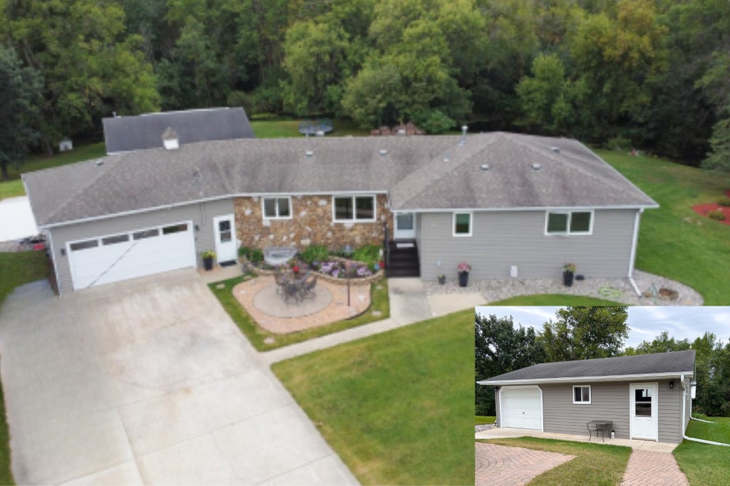 Space, style, and a walkout surprise (The PELICAN RIVER!).....this rambler delivers 4 bedrooms, 3 bathrooms, a 2-stall attached garage, PLUS a detached 720 sq. ft. insulated garage and storage lean-to for your extra treasures. The main-level primary bedroom is a true retreat, complete with an adjacent stunning 3/4 tile walk-in shower and modern vanity. The standout dining area opens through patio doors to a maintenance-free deck, all part of this steel-sided home overlooking a park-like yard on over an acre on the serene Pelican River. Enjoy the sun-filled living room, stylish vinyl plank flooring, and a beautifully updated kitchen with quartz countertops, tile backsplash, and stainless steel appliances. Rounding out the main level it is complete with a sleek full bathroom, and a roomy laundry room conveniently located off the kitchen. Downstairs, enjoy a spacious family room, 3 large additional bedrooms, and a 3/4 bathroom. And outside? This property shines with impeccable landscaping, a concrete pad ready for pickleball or chalk art and peaceful reading spots along the river. Whether you’re entertaining, relaxing, or simply soaking up the river views, this property is truly one of a kind!