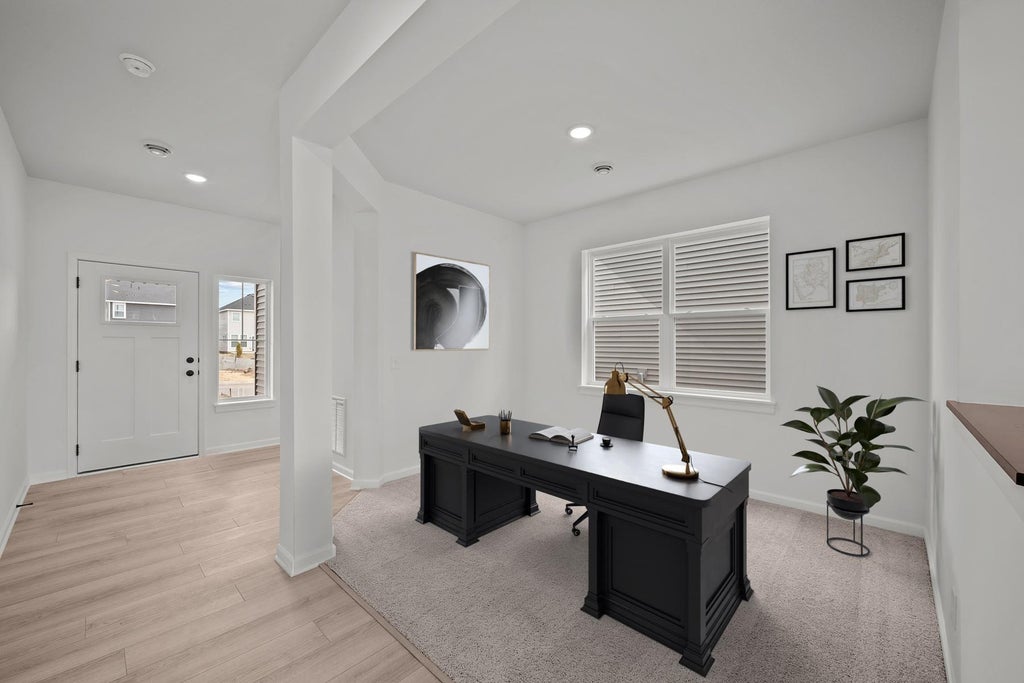Ask about our 5.99% interest offer! Outdoor Amenities galore, Pickleball courts, dog park, 2 playgrounds, trails and more! Work from home in the main level study! This incredible 4 bedroom home features an amazing kitchen with sink on the perimeter with window and dining area, with tranquil views of the back yard. Entertain guests in the open concept that flows right into the large great room, which features a sleek electric fireplace! Upstairs, unwind in your massive Owners' Suite with ample walk in closet! Three more bedrooms, laundry, and a full hall bath complete the upper level!