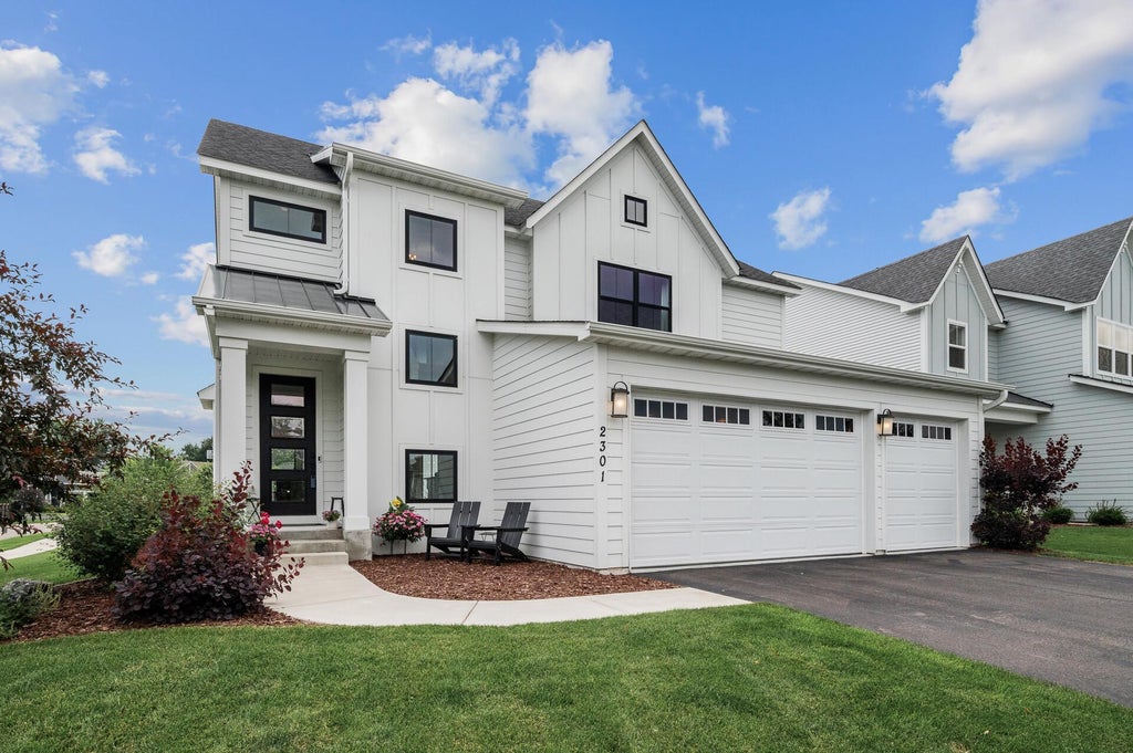 Located in a highly sought-after St. Michael community, this stunning two-story showcases top-tier craftsmanship and modern design. From its eye-catching curb appeal to the 10-foot garage doors and oversized black windows, every detail shines. Step inside to an open-concept main floor featuring engineered hardwood, a gourmet kitchen with double ovens, and a massive island — all bathed in natural light from the 8’ Pella sliding door. Upstairs, enjoy plush upgraded carpeting and a luxurious owner’s suite with a spa-inspired bath, complete with a walk-in tile shower and a spacious closet conveniently connected to the upstairs laundry. The finished lower level offers a second family room with a dry bar — perfect for entertaining — plus generous storage throughout. Tech-savvy buyers will love the whole-home Wi-Fi setup, ideal for remote work. Outside, enjoy the community pool, playground, and picnic pavilion just steps away. With nearly $50,000 in premium builder upgrades, this home is move-in ready and sure to impress!