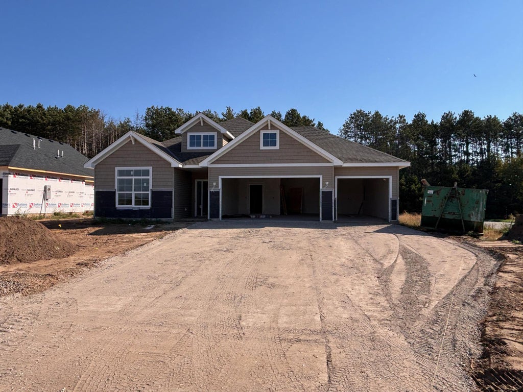 JP Brooks proudly presents the Waterford Villa with the upgraded Elevation B floor plan, offering exceptional design and functionality on a slab-on-grade in the sought-after Fairway Greens North community in Isanti. This thoughtfully designed home includes a unique workshop area behind the second and third stall of the garage on a stunning corner homesite, providing ample additional space for projects or storage. The designer kitchen is a chef's delight, featuring crown molding, hardware, a large 8' island and quartz countertops. The living room boasts a cozy gas fireplace and warm LVP floors, creating a welcoming space for relaxation. The vaulted primary suite offers a luxurious retreat, complete with an Luxury Tiled Shower and double sinks! Step outside from the dining area to enjoy the 12' x 12' concrete patio, perfect for outdoor dining or entertaining. Painted onsite trim throughout home! Irrigation and Sod Included! Please note: Photos, colors, features, and dimensions are for illustrative purposes only and may vary from the actual home. See Sales Consultant for Specific Colors and Options! Targeting End of November Completion!