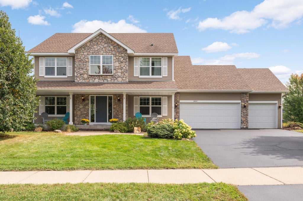 ***Multiple offers... highest and best offers due 12pm on Tuesday 9/23*** Stunning two-story home located in a sought-after Lakeville neighborhood within the highly acclaimed 196 school district. Step inside to an open-concept main level featuring a spacious kitchen with granite counters and stainless-steel appliances, both formal and informal dining areas and living room with gas fireplace. The upper level includes four generously sized bedrooms, including a private primary suite with vaulted ceiling, walk-in closet and private bath. The walkout lower level offers even more living space with a large family room, second gas fireplace, and wet bar—ideal for entertaining. Step outside to enjoy the deck overlooking a fully fenced backyard or unwind on the charming front porch. The 3-car garage provides ample room for vehicles, storage, and hobbies. Conveniently located near shopping, grocery stores, restaurants, parks and more - this home truly has it all. Welcome home!
