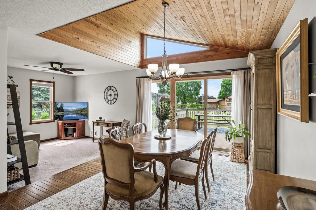 Welcome to this beautifully maintained 3-bedroom, 2-bath home located in the heart of Eagan, within the highly rated Independent School District 196 (Rosemount–Apple Valley–Eagan). Perfectly situated just minutes from the Eagan Outlet Mall, Trader Joe’s, restaurants, grocery stores, and parks, this home offers both convenience and charm. Woodhaven Park is just a short stroll away, ideal for morning walks or weekend play. This home blends classic character with thoughtful modern updates and upgraded appliances. When entering the home you'll be greeted by a vaulted dining room ceiling and many windows that fill the home with natural sunlight. Outside you'll enjoy the spacious backyard, designed for entertaining or relaxing, complete with updated landscaping, brick garden borders, and a brick patio added in 2021. Recent improvements ensure peace of mind and comfort, including a Bryant furnace and AC (2017), water heater (2025), water softener (2016), updated LED and can lighting, and white vinyl windows that offer easy maintenance. Upgraded appliances throughout the home including an induction oven in the kitchen, while the laundry area boasts a mega capacity washer/dryer and ample storage areas. The primary bathroom features a tiled shower and floors and a stylish vanity. Additional upgrades and features include a new custom dining room window (2019), two storm doors, a new front door, updated 10-year smoke detectors (2024), stainless steel appliances in the kitchen, and a buried secondary power line for added curb appeal and reliability. Don't miss out! Schedule your showing today!