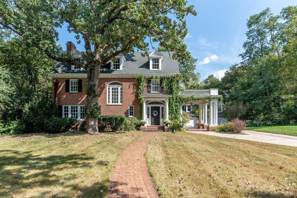 Built in 1916, this historic Baker Avenue residence blends timeless elegance with unmatched character. Set back on a long private driveway, the home greets you with a stately brick exterior, classic columns, and a covered portico that create an unforgettable first impression. Offering 4 bedrooms, 3 baths, and a rare 3-stall garage with storage above, the property features 3,750 sq ft of above-grade living space filled with vintage charm and period-specific details. Inside, every room showcases the craftsmanship of a bygone era—arched doorways, French doors, original built-ins, crown molding, and glass-paneled cabinetry. The main level includes a grand living room with a fireplace, a formal dining room with corner cabinets, a bright sunroom wrapped in windows, and a distinguished library with rich wood shelving. Upstairs, spacious bedrooms reflect early 20th-century design with unique ceiling lines and architectural nooks. A finished third floor offers a character-filled retreat with wood-paneled walls and exposed brick—ideal for a family room, office, or creative space. Multiple decks overlook the wooded setting, offering privacy and natural beauty. With its solid build, traditional design, and ornate details throughout, this property captures the best of classic Mankato while inviting its next chapter. Located in West Mankato, just a short walk to Roosevelt Elementary and Mankato West High School.