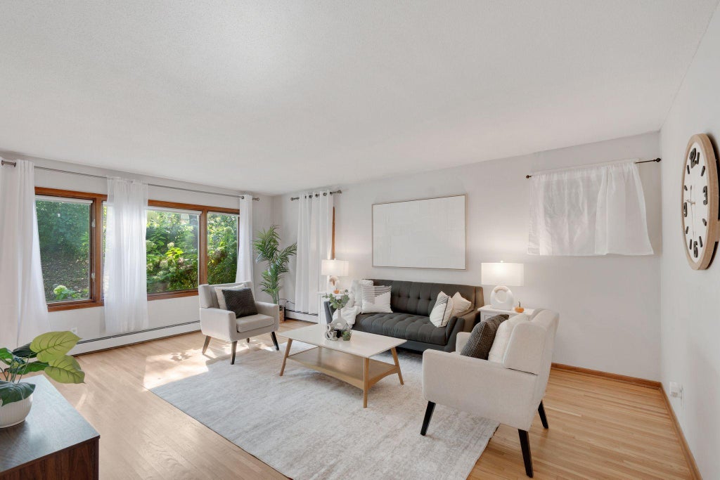 Sunny River Hills rambler with updates throughout. Welcoming living room that flows into kitchen and formal dining room that could be used as a family room with its cozy wood burning fireplace. Sliding glass door opens out onto large backyard patio expanding your entertaining space. Original hardwood floors throughout main floor except for the kitchen which boasts newer flooring, stainless steel and modern painted cabinetry. Primary bedroom has its own private 3/4 bath with updated flooring and vanity. Double closets and two windows make it both functional and inviting. Two more bedrooms and full updated bathroom complete the main floor. Huge lower level multi-purpose family room/amusement room. There is additional finished space that could be an office, workout room, craft room, the possibilities are endless! Also, lower level unfinished storage and laundry room. Relax on your patio in your fully fenced private backyard. Convenient to schools, parks, shopping, downtown highway access and the Burnsville Transit Station.