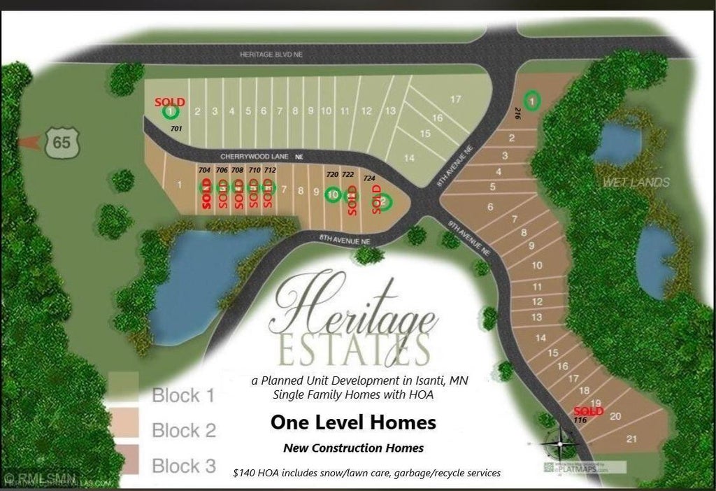 This home pre-sold. This home has large covered front porch, plus patio in rear with Pergola. The interior has a beautiful kitchen with corner pantry, center island, granite countertops, and stainless-steel kitchen appliances. The spacious great room has a built-in dry bar, the informal dining area faces a large patio with pergola. Owner's suite has box vault with ceiling fan, a large private bathroom ensuite with linen closet, and spacious walk-in closet. 2nd bedroom is near hall full bath and linen closet. See available listing 720 Cherrywood Lane NE, Isanti. Construction starting soon and will be completed by spring 2026.