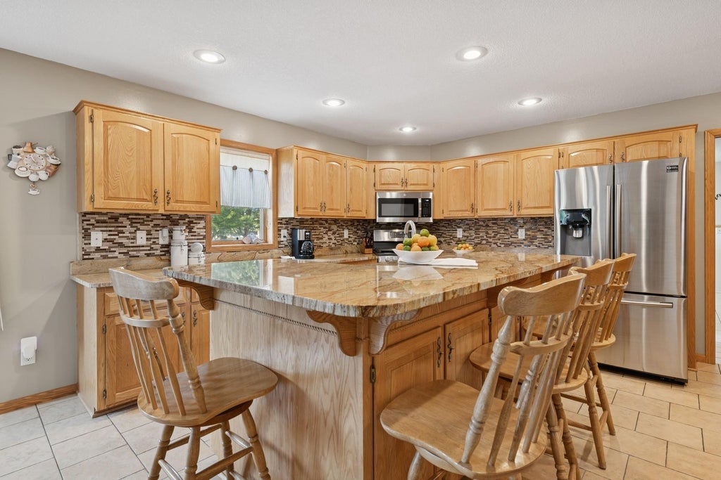 Welcome to this beautifully maintained two-story gem, perfectly situated in one of Lakeville's most sought-after neighborhoods. From the moment you step into the spacious foyer, you'll feel right at home. A stylish front office with French doors offers the ideal quiet retreat-perfect for remote work or a private reading nook. The heart of the home is a light-filled, open-concept main level designed for both comfort and connection. The inviting living room, anchored by a cozy gas fireplace, flows seamlessly into the informal dining area and a stunning kitchen that will thrill any home chef. Featuring granite countertops, a generous center island with seating, gleaming stainless steel appliances-including a brand-new microwave-and durable ceramic tile flooring, this kitchen checks every box. Just off the kitchen, a formal dining room sets the scene for memorable dinners and holiday gatherings. Thoughtful touches continue with a bright main-level laundry room and a mudroom that blends practicality with everyday style. Upstairs, you'll find four generously sized bedrooms, including a luxurious primary suite. This serene space features a walk-in closet, ceiling fan, and a spa-inspired bathroom complete with dual vanities, a jetted soaking tub, and separate shower. But the real showstopper? The finished lower level-a true entertainer's dream! Enjoy a custom wet bar, second gas fireplace, expansive family room, fifth bedroom, and a stylish ¾ bath. It's the perfect spot for movie nights, game day, or out-of-town guests. Step outside to a backyard made for Minnesota summers. Lounge on the maintenance-free deck, gather around the firepit on the spacious patio, or play the day away in the beautifully flat, 0.37-acre yard. This home blends elegance, function, and fun-all in a premier location. Don't miss your chance to fall in love! Brand new carpet and close to award winning schools, shopping, dining and great freeway access!