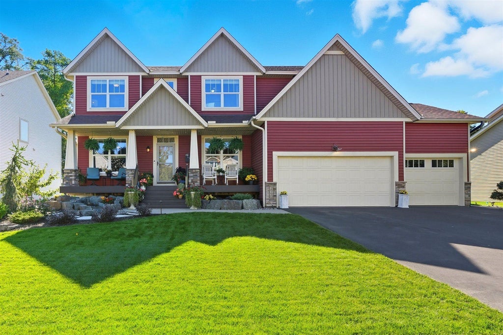 From the moment you arrive, this home impresses with its beautifully landscaped front yard, where vibrant flower beds create an inviting atmosphere. The maintenance-free front porch offers a perfect spot to relax and enjoy the peaceful surroundings. A custom stone waterfall at the entrance adds elegance and tranquility, welcoming you home in style. Step inside to discover a bright, open floor plan designed for both comfort and sophistication. The dedicated home office features built-in cabinets and a cozy window seat, providing an ideal space for remote work or study. The living room centers around a stunning stone fireplace, flanked by custom built-ins—perfect for cozy evenings or entertaining guests. The gourmet kitchen shines with granite countertops, stainless steel appliances, a spacious center island with seating, and a large pantry for extra storage. The adjacent dining area is filled with natural light and opens to the deck, making indoor-outdoor living effortless. A custom built-in buffet with glass-front cabinetry, lower storage, and ample countertop space adds style and functionality to the dining space, ideal for serving and displaying décor. The mudroom is designed with abundant natural light, custom cabinetry, an extra-large sink, open shelving, a built-in bench with storage, and wall-mounted hooks for easy organization. A compact refrigerator adds extra convenience, enhancing daily living. Upstairs, the owner’s suite is a true retreat, featuring a vaulted ceiling, a generous custom closet, and a spa-inspired bathroom with dual sinks, a soaking tub, and a glass-enclosed shower. Three additional bedrooms are spacious and filled with natural light, each with custom closets for ample storage. The custom-designed laundry room provides plenty of storage and counter space. A bright, inviting loft offers a versatile area perfect for relaxing, entertaining, or enjoying a cozy reading nook. Off the third garage stall, a finished addition provides year-round comfort with central heating and cooling, a wall-mounted AC unit, and a gas heater. This bright, spacious area features ceiling fans, ample lighting, and large windows, making it perfect for use as a craft room, home gym, workshop, or hobby space. Its flexibility adds valuable square footage and endless possibilities to the home. The backyard is a private oasis, thoughtfully designed for relaxation and entertainment. Enjoy evenings in the hot tub, host gatherings on the spacious patio under the pergola, or simply unwind in the beautifully landscaped yard with privacy fencing. Every detail—from the manicured lawn to the in-ground sprinkler system—has been carefully planned to make outdoor living just as enjoyable as indoors. The spacious unfinished basement offers excellent potential for future expansion. With multiple egress windows providing natural light and rough-ins already in place for a bathroom, it's ready for your custom vision. An insulated 3-car garage completes this exceptional home.
