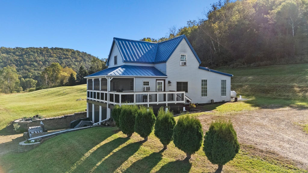 Nestled in the picturesque bluffs of Alma, this beautifully updated modern farmhouse is the perfect blend of timeless style and modern comfort. Step through double front doors onto a spacious screened porch that stretches across the front of the home, the ideal spot to soak in unmatched panoramic views. Inside, the bright kitchen boasts open shelving, a rustic barnwood backsplash, stainless steel appliances, and plenty of counter space—perfect for everyday living and entertaining. The main-level owner’s suite provides convenience and privacy, while the lower level offers versatile space for laundry, storage, and hobbies or crafts. Upstairs, you’ll find three generously sized bedrooms, each with plenty of natural light. Every detail of this home has been thoughtfully refreshed, inside and out, making it move-in ready for its next chapter.