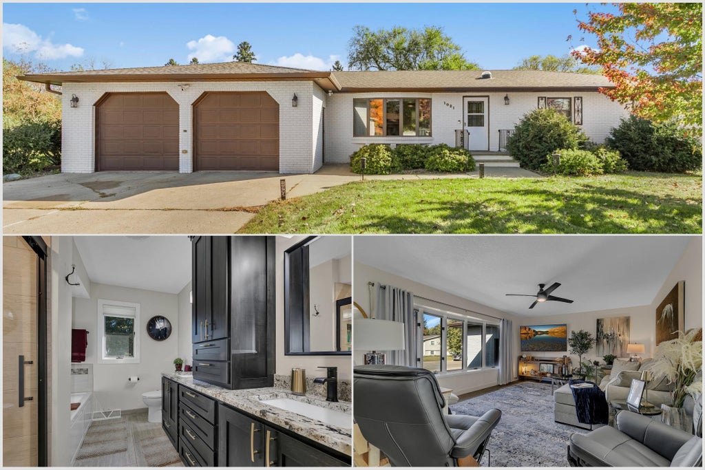 Located on a no-outlet street with low traffic and set on over a half-acre level lot, this home offers space, versatility, and modern updates — move-in ready and perfect for today’s lifestyle! In addition to comfort, flexibility, and style, it features 4+ bedrooms, 2.5 baths, and many upgrades throughout including new white window and door trim + baseboards for that modern touch. The main level welcomes you with luxury vinyl plank flooring (2025) flowing seamlessly through the living room, kitchen, dining area, hallways, and laundry room. The updated light fixtures on both levels add a modern touch. The kitchen is loaded with cabinets and counter space and features a new dishwasher, sink, faucet, garbage disposal, and bottle cleaner (2025), a spacious layout perfect for entertaining. With two laundry areas (one conveniently located on the main floor and another in the basement), this home was designed for practical living. Three bedrooms on one level plus a private office that can easily serve as a fourth bedroom or sunroom. A completely renovated modern bath with double sinks, granite countertops, tile shower and flooring, and a luxurious whirlpool and air therapy combo tub — the perfect retreat. Bedrooms also feature new carpet (2025) for a fresh, comfortable feel. The lower level expands your living space with a large family room, bedroom, designated exercise room (which could become another bedroom with an egress window), and a full bath with a separate shower and oversized whirlpool tub. Enjoy evenings by the electric crystal fireplace with heat or entertain at the dry bar that features maple cabinets and shelving trimmed with Alder, includes wine fridge. The lower level also features updated carpet, puck lighting ++ approximately 800 sq. ft. of storage space. In addition to the 16 x 20 Storage shed. Furnace (2019), hot water heater (2022), water softener (2018), reverse osmosis system added in 2025, shingles (2012). In-ground sprinkler system servicing both lots. Insulated garage with its own furnace makes it comfortable year-round. Must see! Too many improvements to list! Owners are licensed real estate agents in MN.